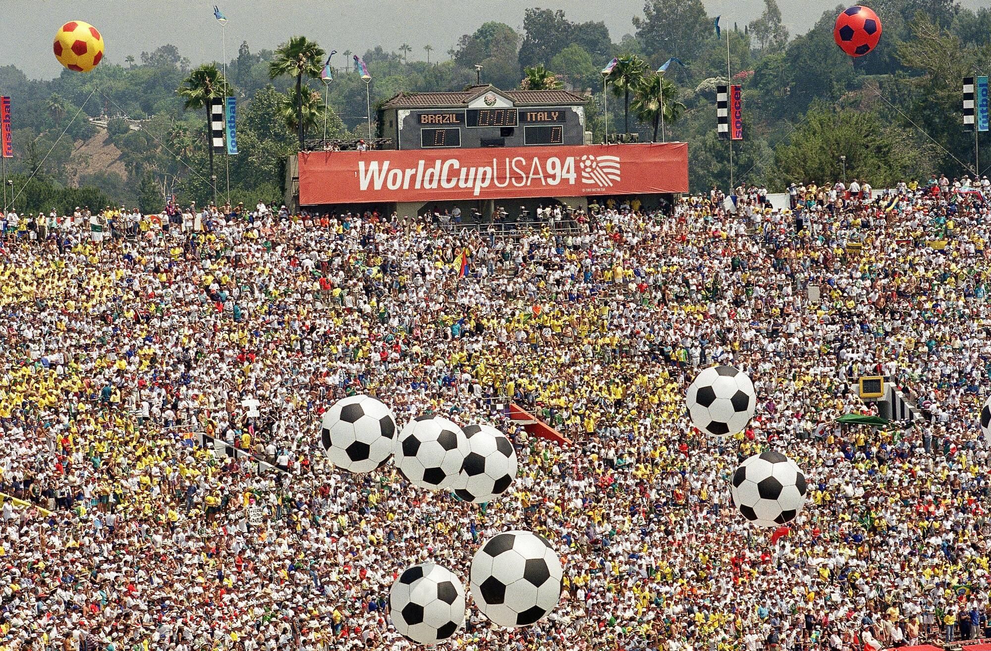 Fans pack the Rose Bowl during a World Cup match between Brazil and Italy on July 17, 1994.