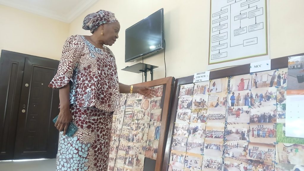 Aishatu Margima, Executive Director of the Women and Youth Economic Advancement and Health Initiative (WYEAHI), stands in her Yola office detailing the MCN project. Photo Credit: Yahuza Bawage/HumAngle.