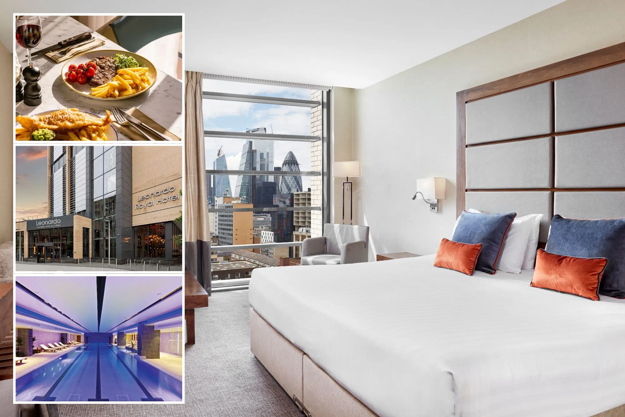 Stay at the Leonardo Royal Hotel Tower Bridge for a luxurious city stay with delicious breakfast buffet, huge rooms with comfy beds and panoramic views of London from floor to ceiling windows.
