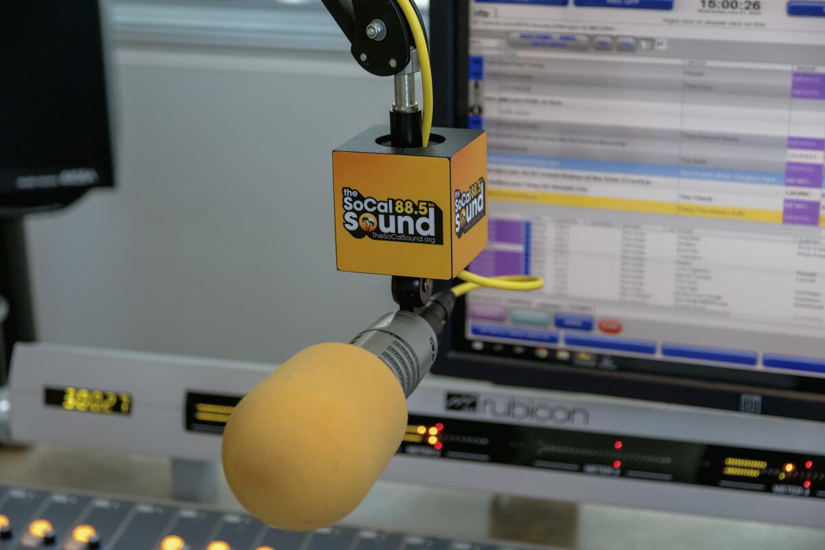 The on-air mic in the station at 88.5 FM SoCal Sound.