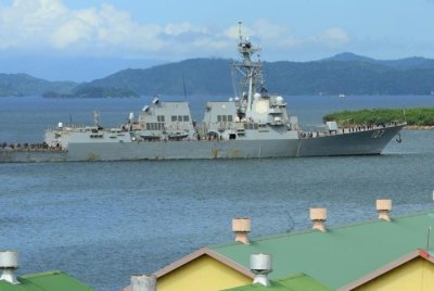 The U.S. Navy destroyer USS Gravely arrives in Port of Spain, Trinidad and Tobago, in late October to conduct military exercises over several days as part of Washington’s naval deployment in the Caribbean Sea. File Photo by Andrea de Silva/EPA