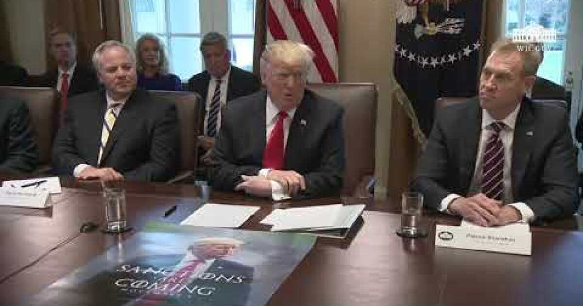 As Trump spoke, a “Game of Thrones”-style movie poster teasing Iran sanctions — “SANCTIONS ARE COMING,” it read — lay unfurled across the table directly in front of him. But he made no remarks on the subject.
