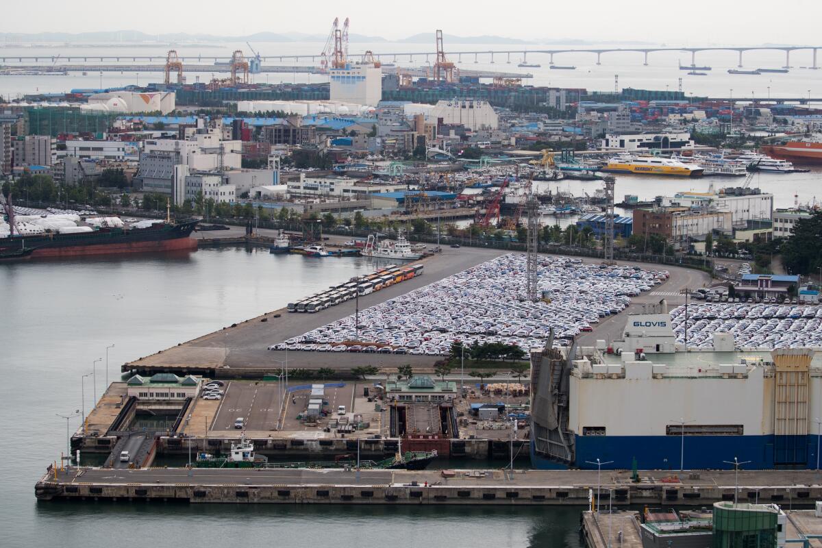 SEOUL — In South Korea, the Trump administration’s 25% tariff on imported cars has sent local automakers Hyundai and Kia scrambling to protect one of the country’s most valuable exports. But General Motors, which last year shipped 418,782 units from its factories here to American consumers — or 88.5% of its total sales — may be facing a much larger predicament.