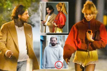 Meanwhile, Pete, 37, wore a beige blazer with a white shirt and denim jeans as he was spotted smoking a cigarette.
