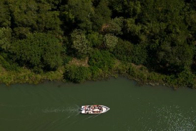 A boat navigates the Uruguay River in the Province of Entre Rios, Argentina, in 2023. File Photo by Juan Ignacio Roncoroni/EPA