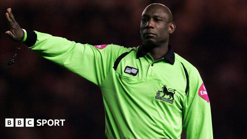He started refereeing in local football in 1979 before making history in 1997 when he oversaw a top-flight match between Derby County and Wimbledon.