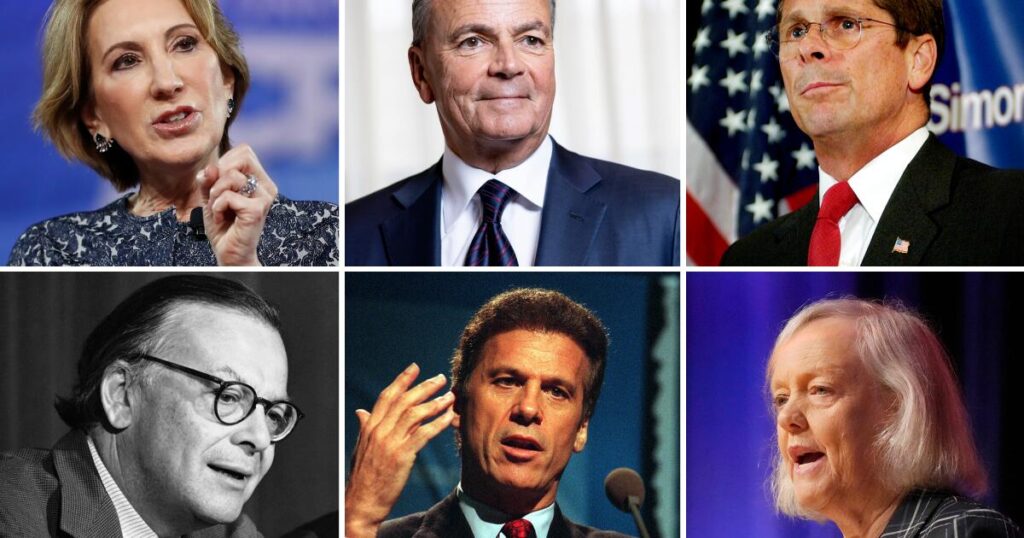 Over the past 50-plus years, a half-dozen fabulously wealthy men and women — William Matson Roth, Meg Whitman, Carly Fiorina among them — have clambered atop their hefty cash piles and, despite any significant political experience, tried to launch themselves into the office of governor or U.S. senator.