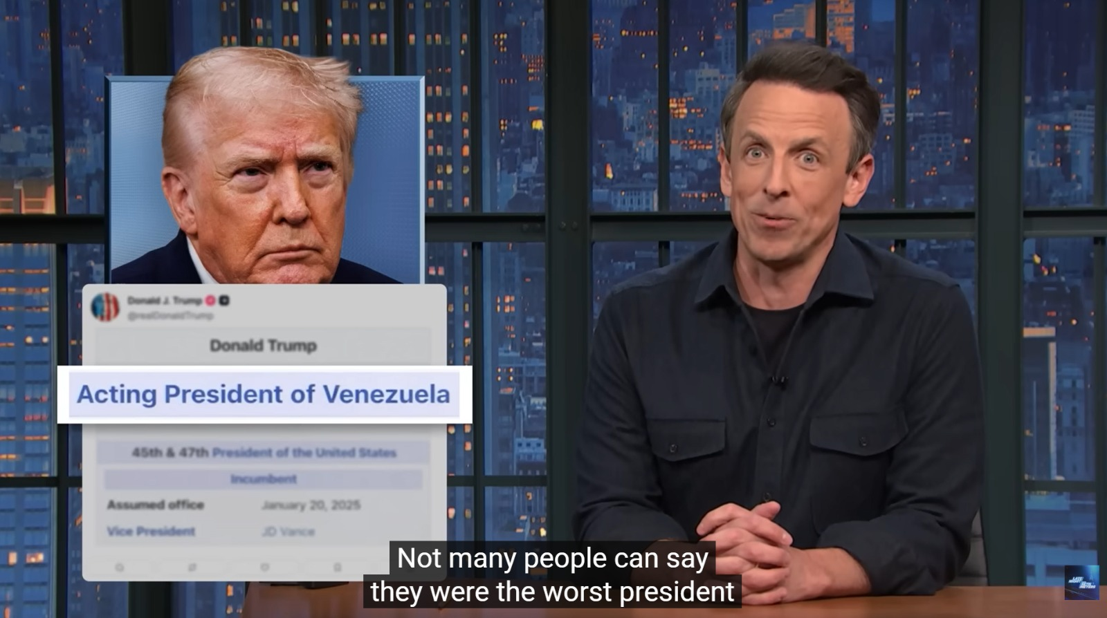 On Late Night, Seth Meyers joked about Donald Trump sharing a post that listed him as president of Venezuela, adding that “not many people can say they were the worst president in the history of two countries.” While a joke like that might land with the US audience, for Venezuelans it collapses two profoundly unequal realities into a punchline: equating the failures of a democratic system with life under an authoritarian regime marked by torture, political imprisonment, and forced exile. Similar tones appeared elsewhere, including when Jimmy Kimmel casually placed Trump and Maduro in the same category of “dictators”. Of course, the joke was never meant for Venezuelans. It was written for Americans. But in a media ecosystem where clips travel instantly across borders, the message is dangerous to Americans, Venezuelans and the whole internet.