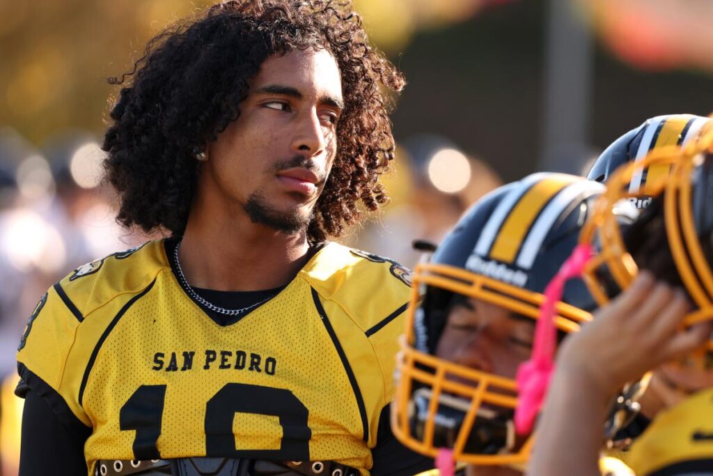 He has become a three-sport standout at San Pedro High with a 4.7 grade-point average. He was the City Section Open Division offensive player of the year as a junior receiver. This season, he has 60 catches for 1,150 yards and 13 touchdowns. He’s also a starting guard who dunks for the basketball team and is one of the favorites to win a City high jump championship after tying for second place last year.