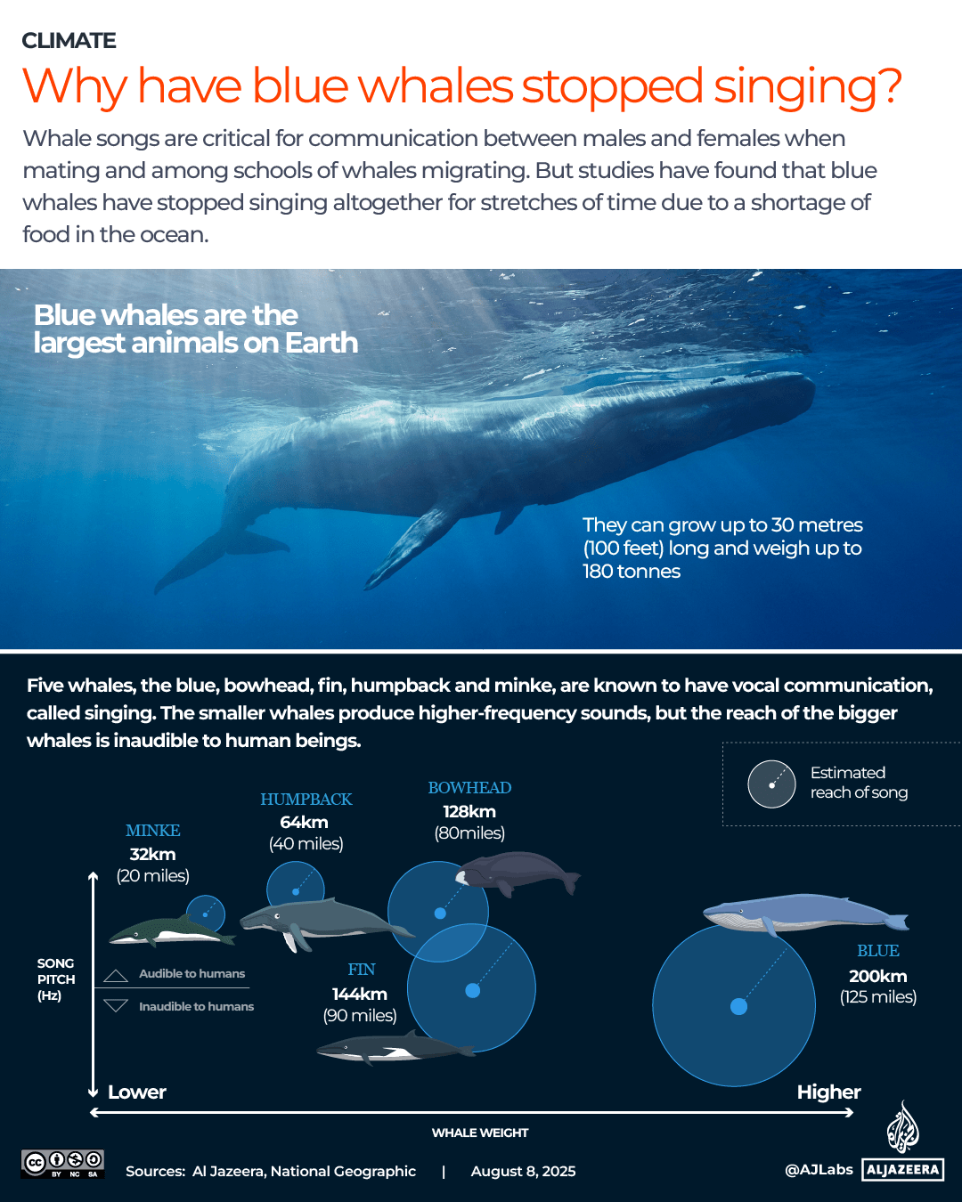 Their eerie quietness, scientists say, is a signal that ocean life is changing fundamentally. The most recent study, conducted by scientists from the Monterey Bay Aquarium Research Institute in California in the US and published in February, examined three types of whales. Researchers found that blue whales, in particular, have become more vulnerable to this change.