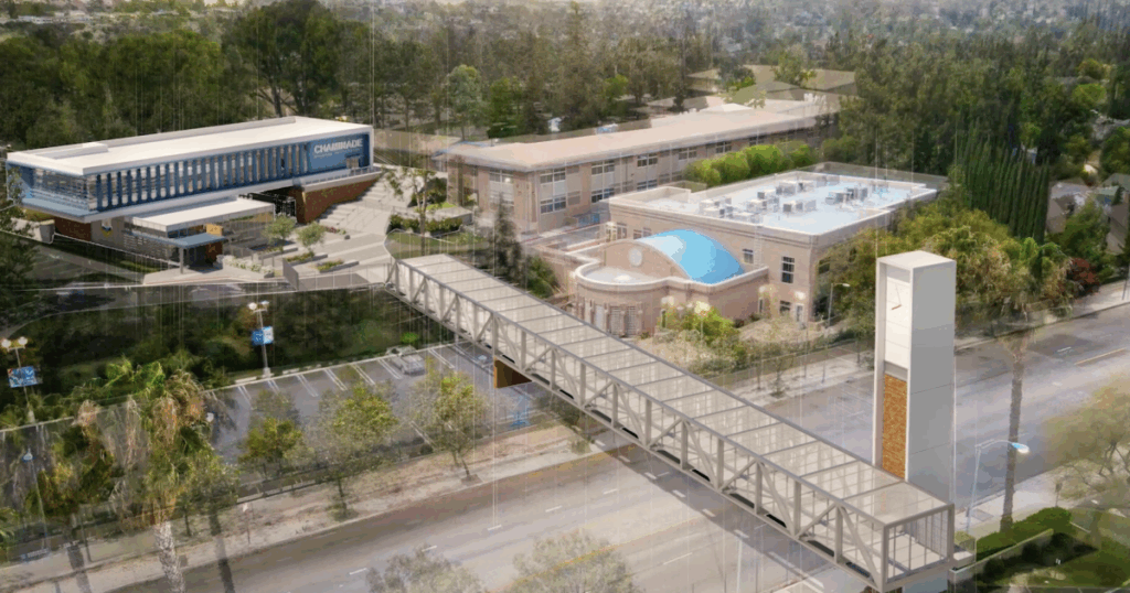 Chaminade has phases planned for construction that will include a pedestrian bridge to link its main campus across the street with the new fields. A new softball field will replace the current baseball field. There will be new campus classrooms and a new school entrance.