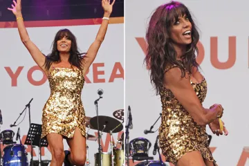 Jenny Powell, 57, looks incredible on the Brit Fest stage in a tiny gold dress