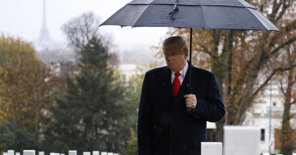 Trump and Russia’s President Vladimir Putin were the only world leaders to skip a procession of world leaders to another commemoration, on Sunday, at the Arc de Triomphe. About 80 heads of state walked in unison — under umbrellas in the pouring rain — down Paris’ grand Champs-Elysees boulevard. Trump arrived later by motorcade, a decision aides claimed was made for security reasons.