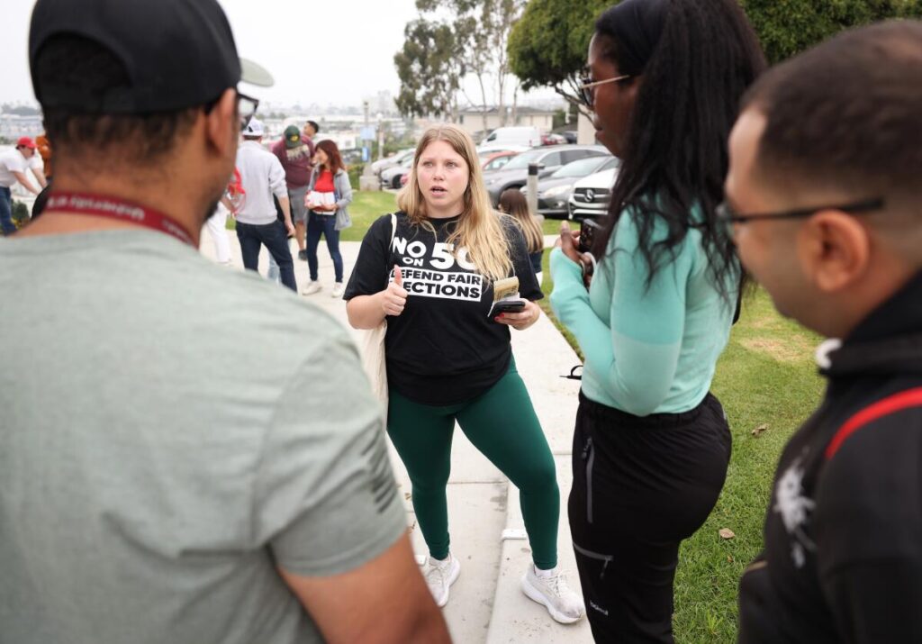 Nearly 50 miles southeast, about 50 Republican canvassers fueled up on coffee and donuts, united over the brisk weather and annoyance about Newsom’s attempt to redraw California’s congressional districts.