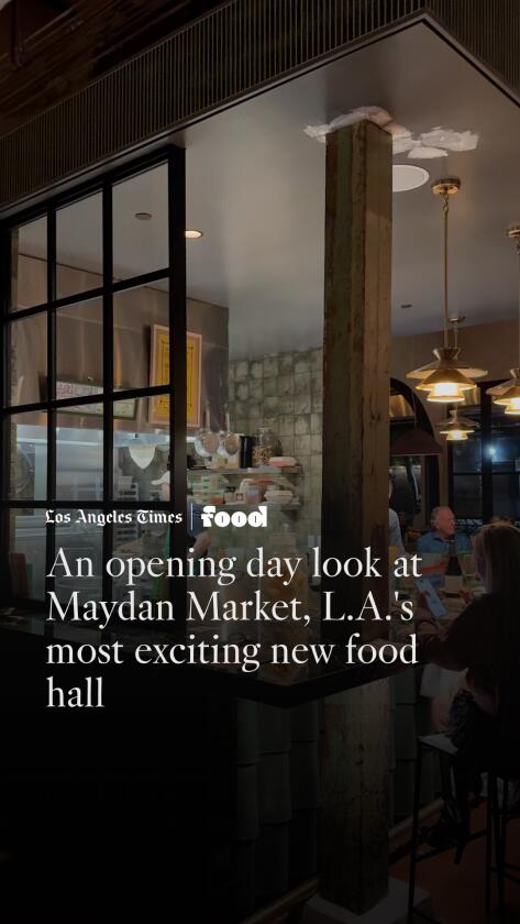 Fortunately, our intrepid woman about town Stephanie Breijo had been telling me all about Maydan Market in anticipation of its recent opening in L.A.’s West Adams neighborhood, across the street from a branch of chef Kat Turner‘s Highly Likely. In addition, Breijo made a hunger-inducing video showing off the live-fire-based restaurants at the heart of the market founded by Rose Previte, whose Maydan in Washington, D.C., is devoted to the cuisines of the Middle East and was among the Top 40 restaurants chosen in 2024 by the Washington Post’s recently unmasked critic Tom Sietsema.